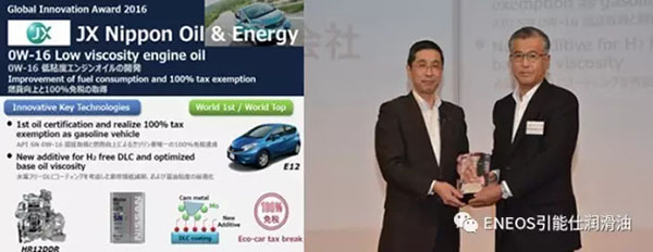 引能仕供应的节能机油产品「API SN 0W-16」荣获2016年日产全球供应商「Nissan Global Supplier Award创新奖」